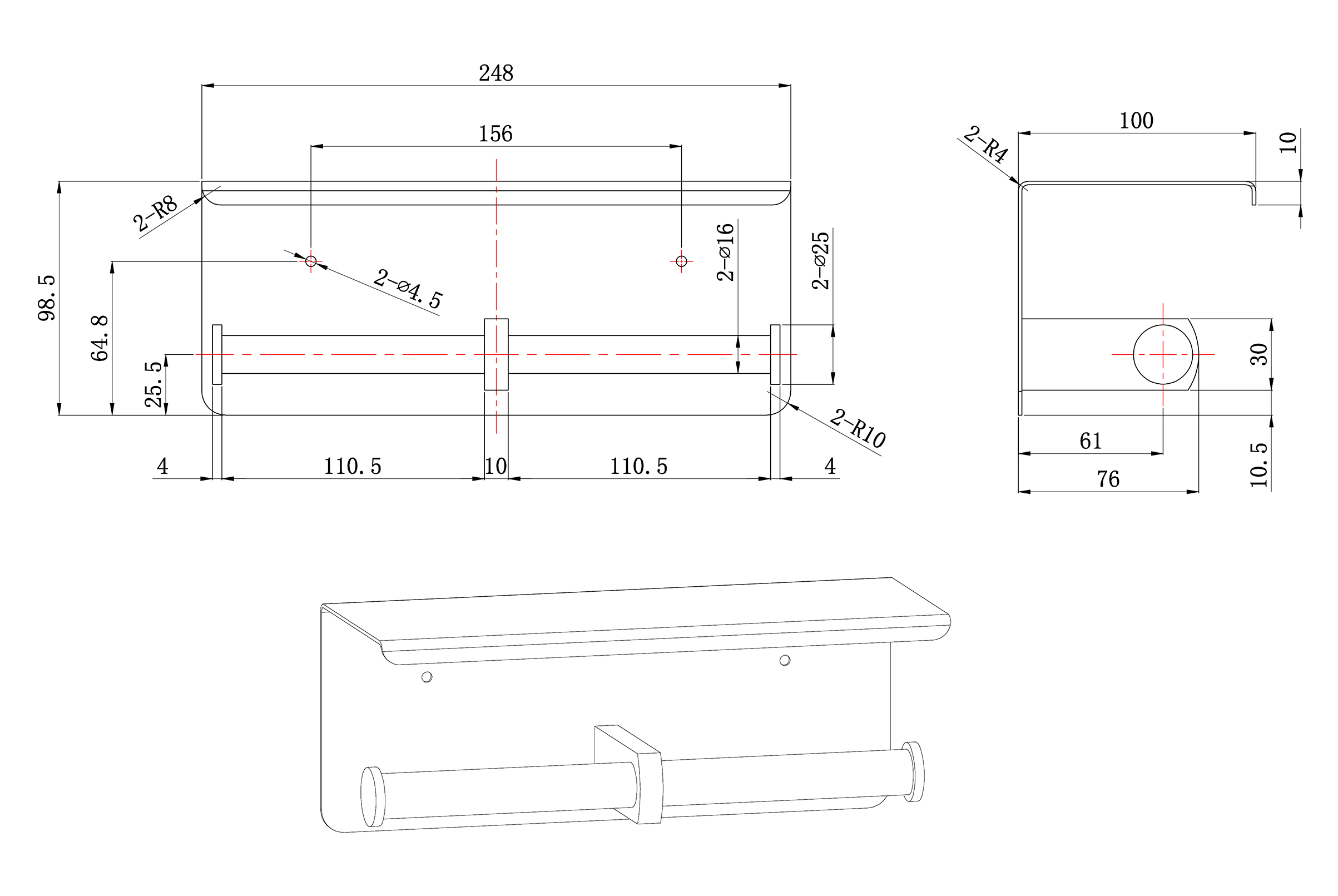 Brush dubbele toiletrolhouder mat-zwart