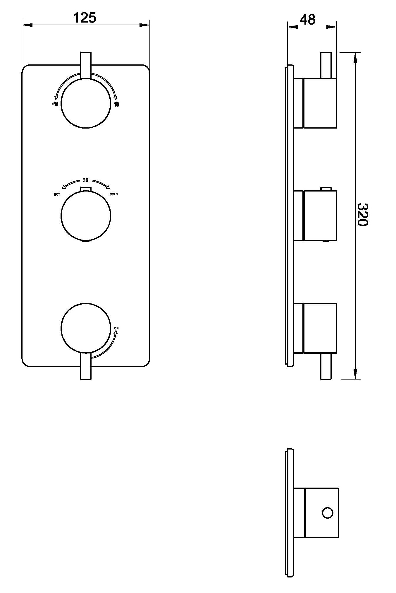Caral afbouwdeel inbouwthermostaat 3 weg geborsteld messing