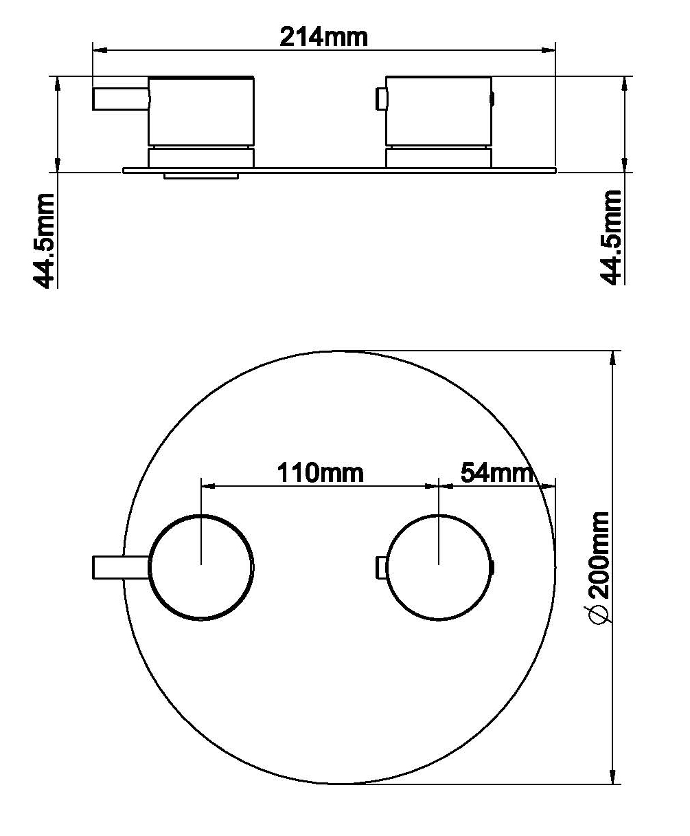 Caral Rond afbouwdeel inbouwthermostaat 2 weg mat zwart
