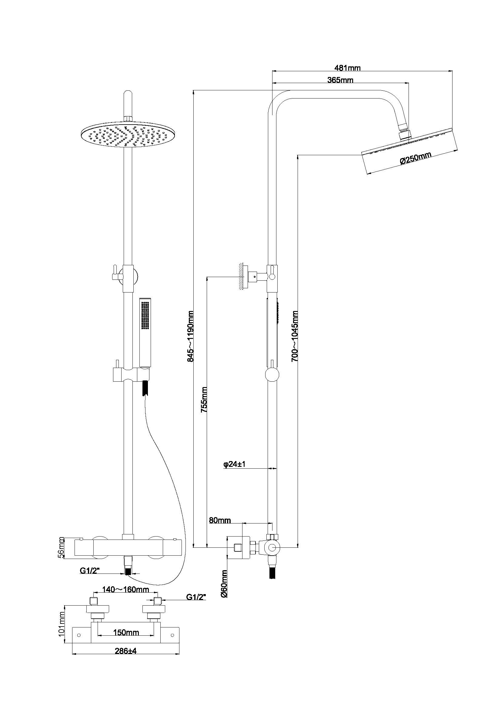 Caral thermostatische regendoucheset opbouw geborsteld brons koper