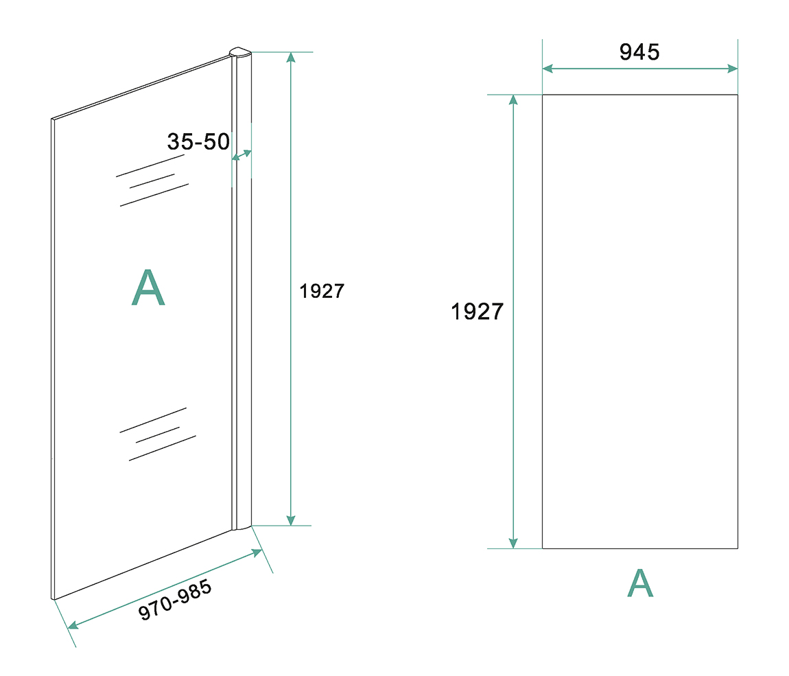 Eco zijwand voor Eco nisdeur 1000×1950 6mm