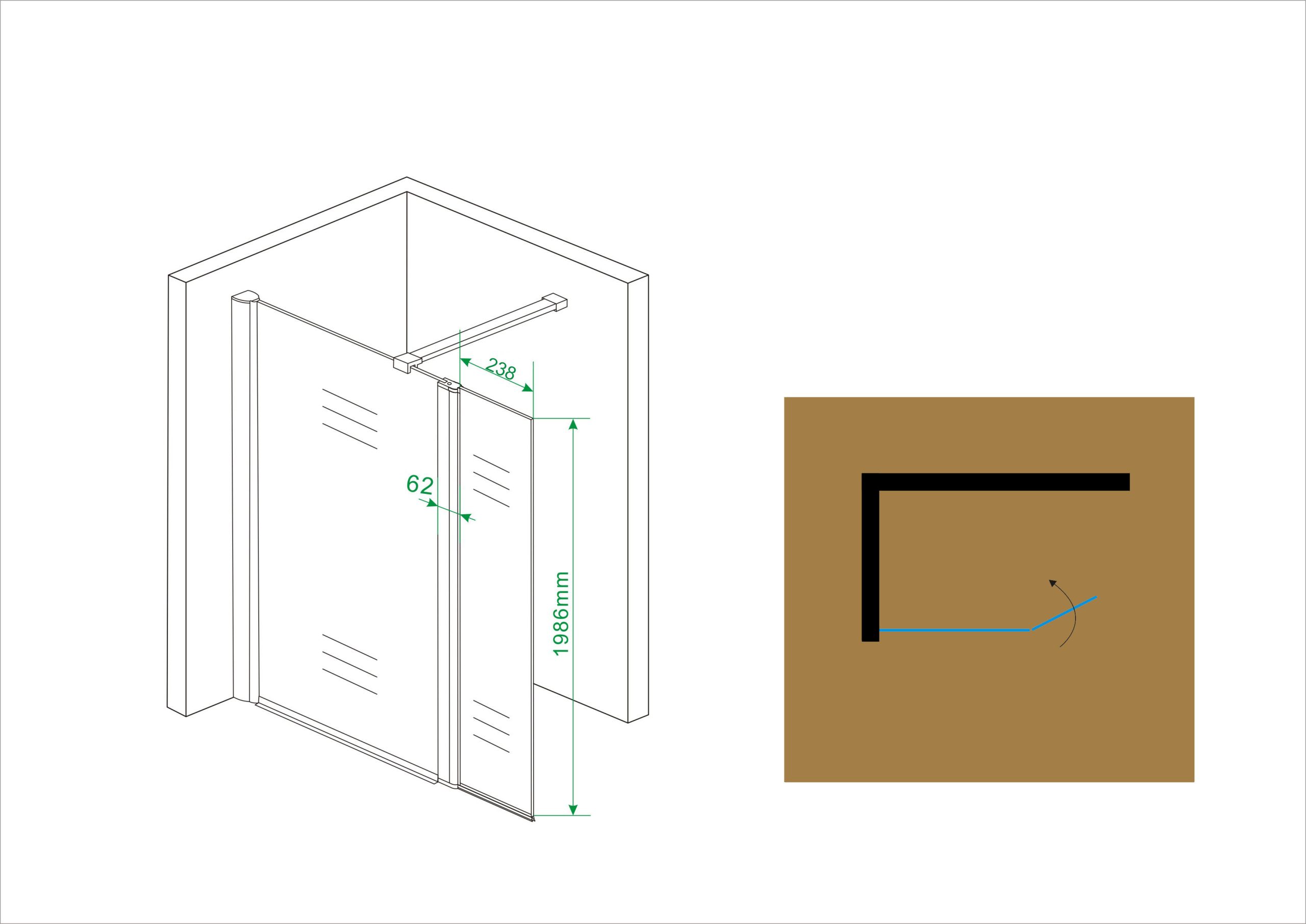 Deze zijwand kan 90 graden naar binnen en buiten weggeklapt worden