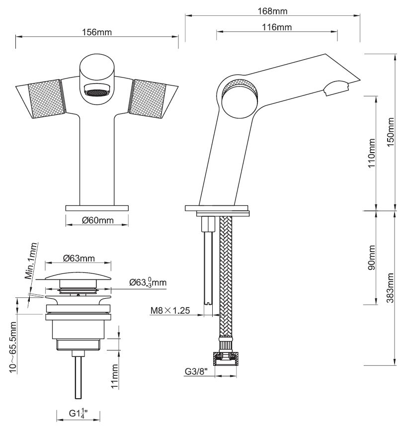 2-knops mengkraan met metalen knoppen en keramisch schijven. Aansluiting dmv flexibele aansluitslangen.