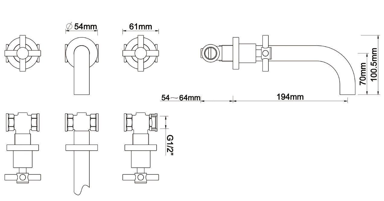 Cross inbouw-wastafelmengkraan 2-knops Inbouwdiepte: 7 cm Keramische afdichtingen Uitloop 20cm kleur chroom