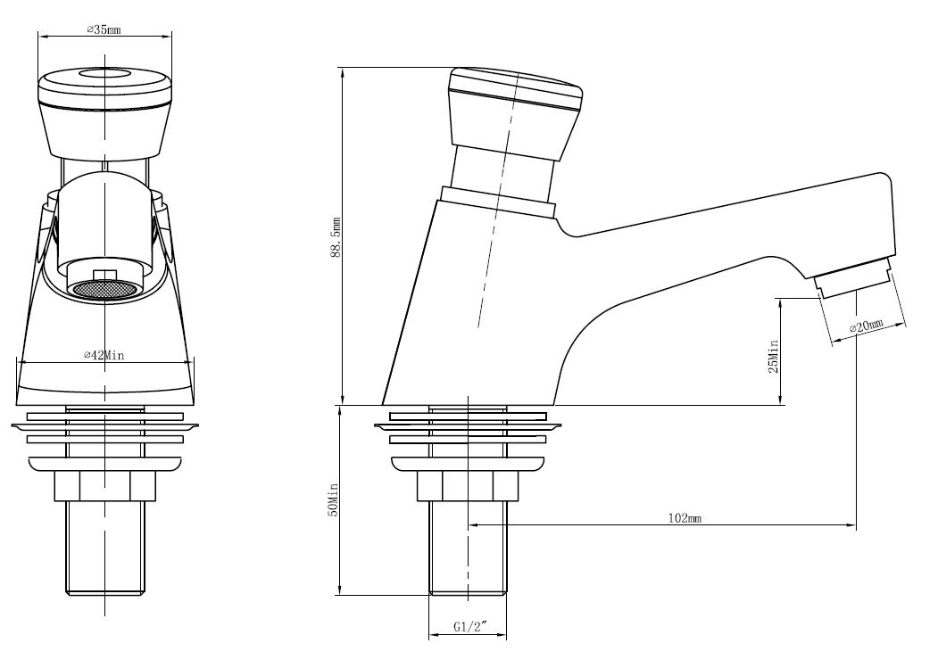 - – Toiletkraan waarbij de waterstroom automatisch stopt