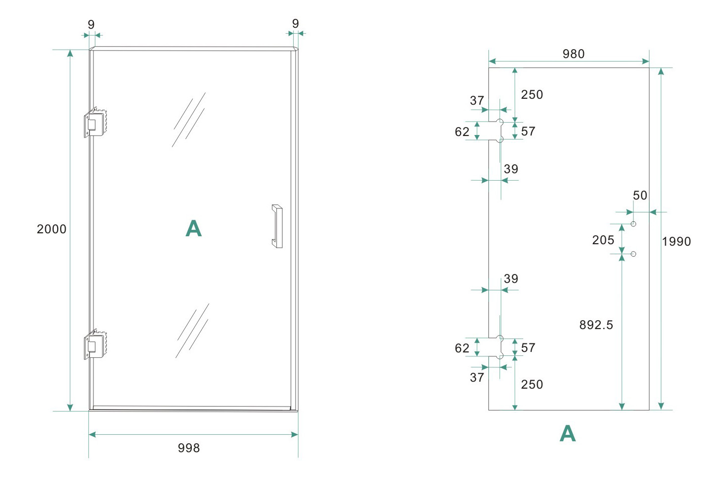 Less nisdeur 1000 x 2000 x 8 mm nano helder glas/gunmetal