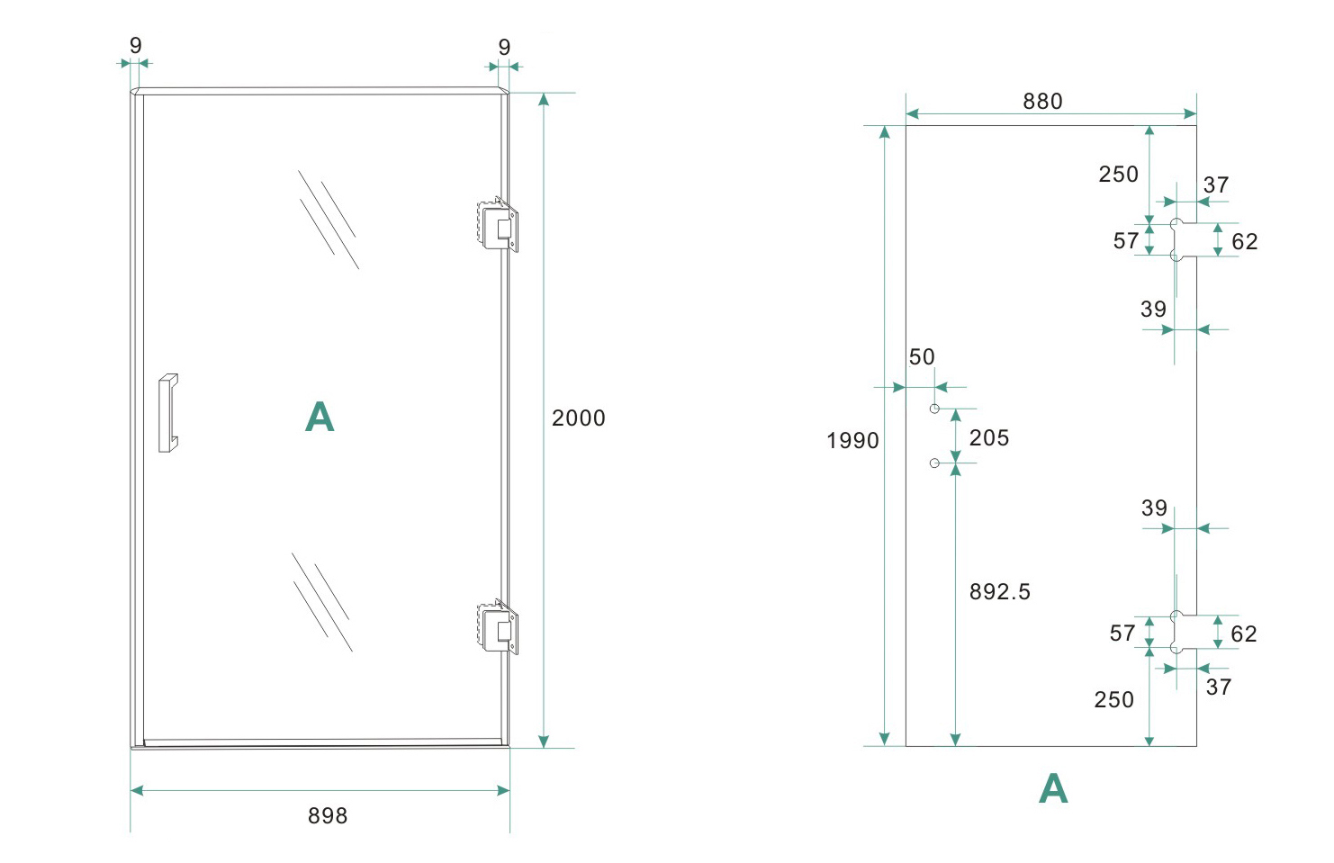 Less nisdeur rechts 900 x 2000 x 8 mm nano spiegelrook- naar helder glas/mat zwart
