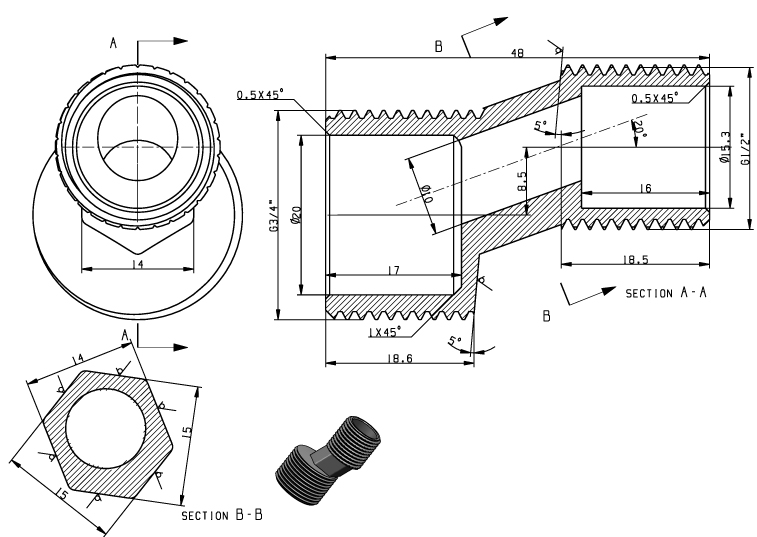 Losse S-Koppeling 3/4×1/2 zonder rozet