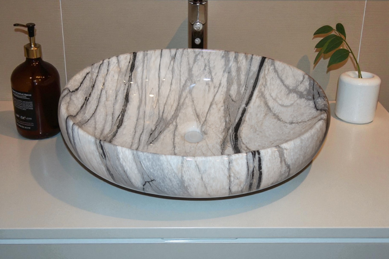 Deze ovale kom in marmerlook combineert natuurlijke schoonheid met een moderne uitstraling. Eenvoudig, stijlvol en perfect voor een tijdloze inrichting.