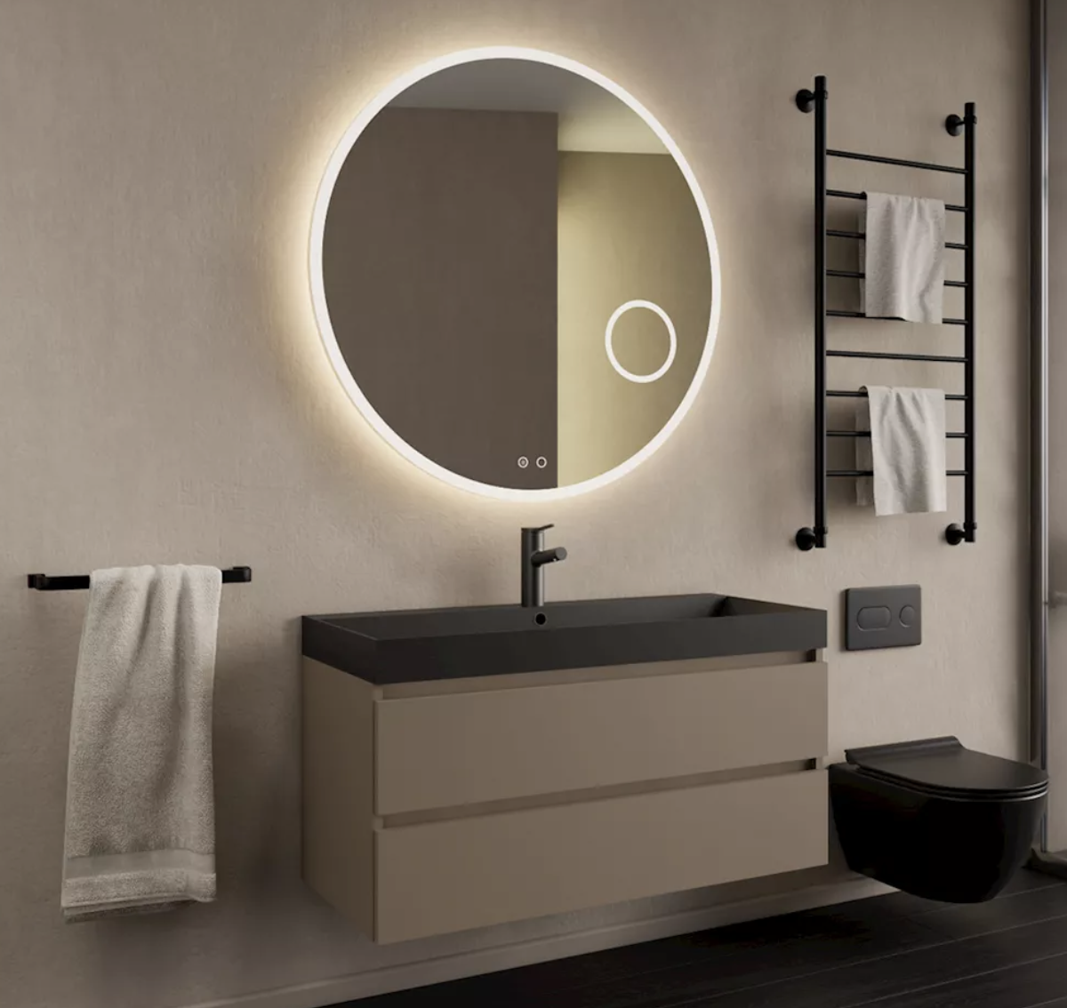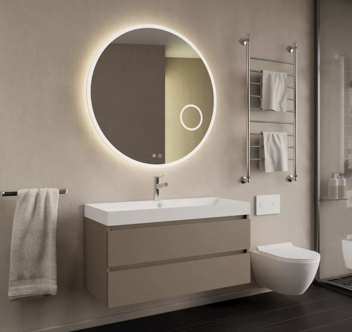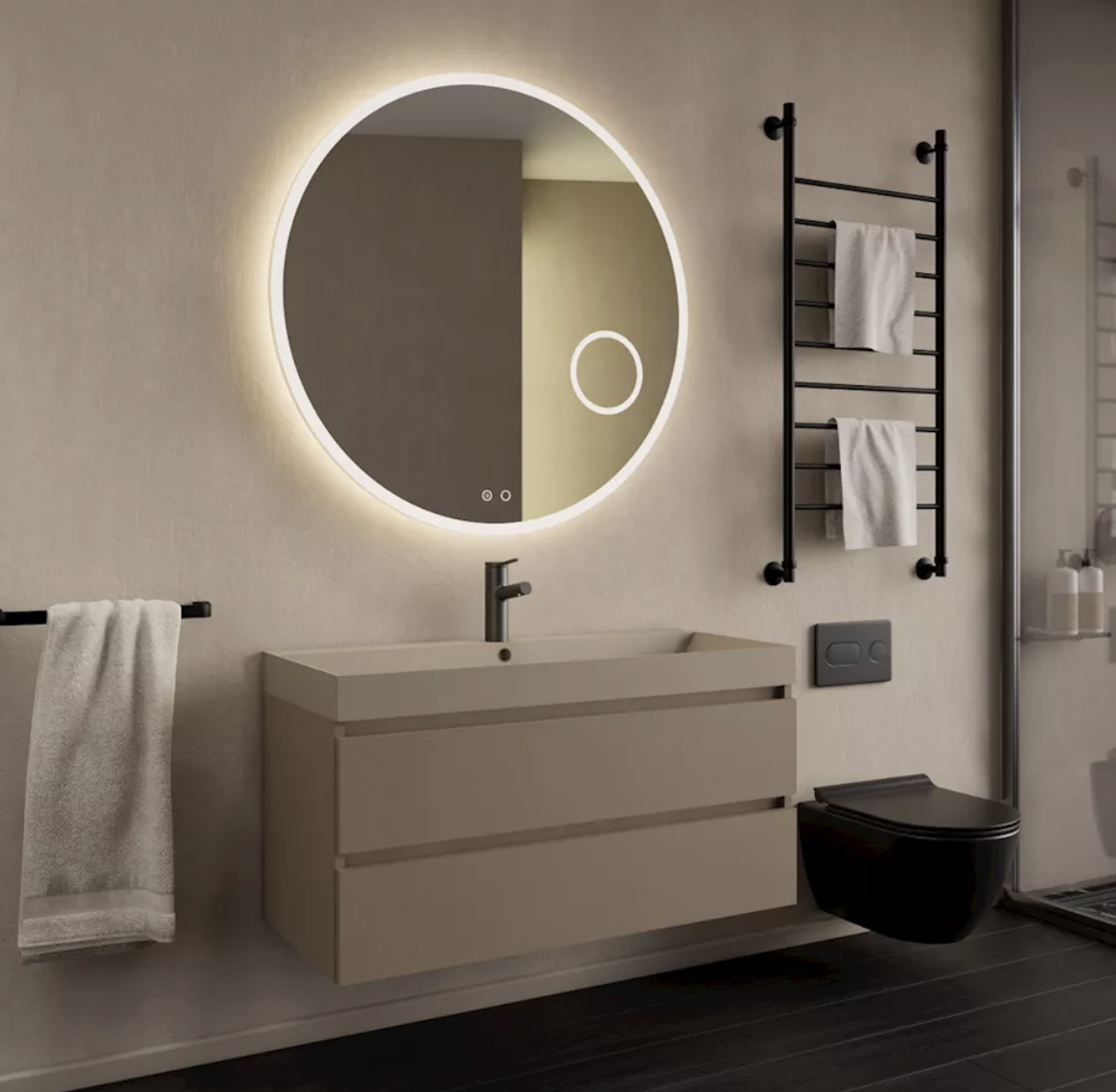 De Milan onderkast van Gliss Design combineert strak design met praktische opbergruimte. De latte kleur geeft de badkamer een warme en moderne uitstraling, terwijl de breedte van 100 cm ruimte biedt voor een opzetwastafel of waskom, met daarnaast extra plek voor accessoires. De ruime laden zorgen voor voldoende opbergruimte, zodat je badkamer altijd overzichtelijk blijft.