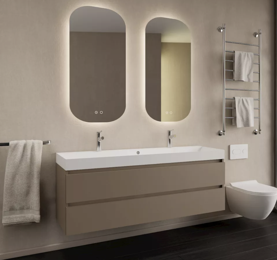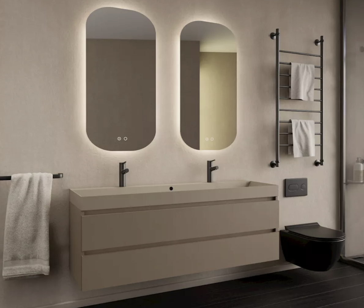 De Milan onderkast van Gliss Design combineert strak design met praktische opbergruimte. De latte kleur geeft de badkamer een warme en moderne uitstraling, terwijl de breedte van 120 cm ruimte biedt voor één of twee opzetwastafels of waskommen. De ruime laden zorgen voor volop opbergruimte, zodat je badkamer netjes en georganiseerd blijft.