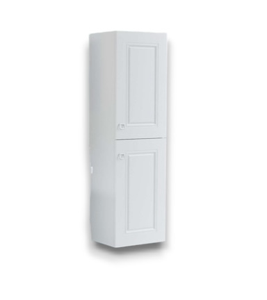 De badkamermeubel set ‘Delta’ van Neff Line bestaat uit membraan CNC- bewerkte deuren en lades met een patroon, een spiegelkast en een hoge kolomkast. De set is uitgerust met soft close deuren en lades en een keramische wastafel.