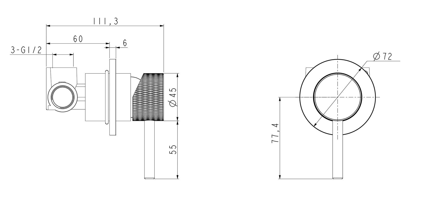 Ribbd inbouw-mengkraan zonder uitloop chroom