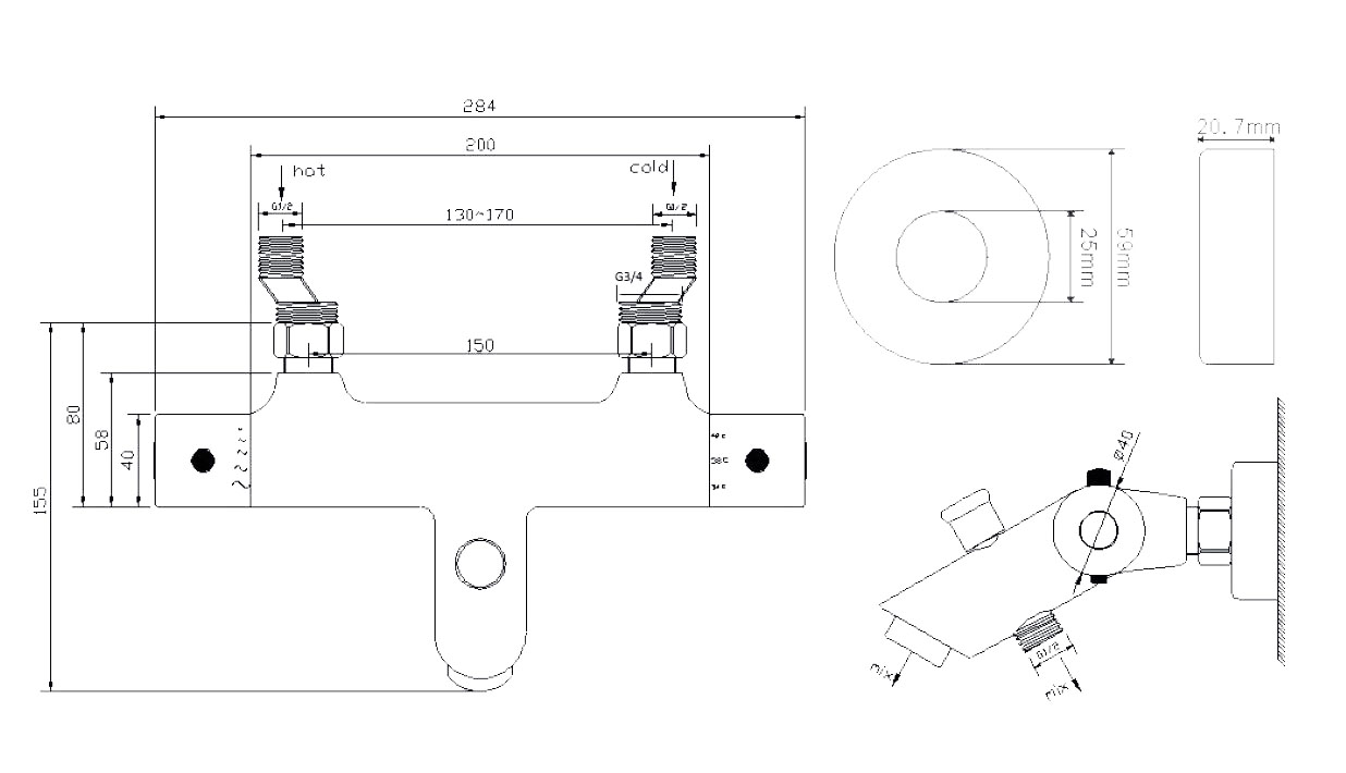 Rio thermostatische badmengkraan chroom.