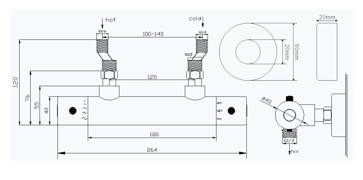 Rio Thermostatische douchemengkraan met volledig messing (chroom finish) knoppen, waterbesparende functie en temperatuurbegrenzer op 38 graden.