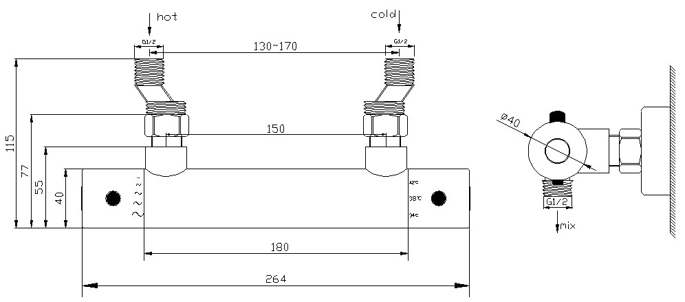 Rio Thermostatische douchemengkraan met volledig messing (geb.staal finish) knoppen, waterbesparende functie en temperatuurbegrenzer op 38 graden.