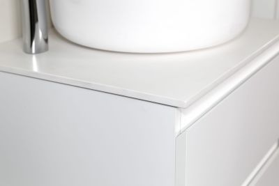 • MDF is een veelgebruikt materiaal voor badmeubels, vooral vanwege de betaalbaarheid en de veelzijdigheid. Het is een houtachtig materiaal dat is gemaakt van samengeperste houtvezels. Wanneer het goed wordt afgedicht met een waterbestendige coating, kan het goed tegen vochtige omgevingen zoals badkamers.