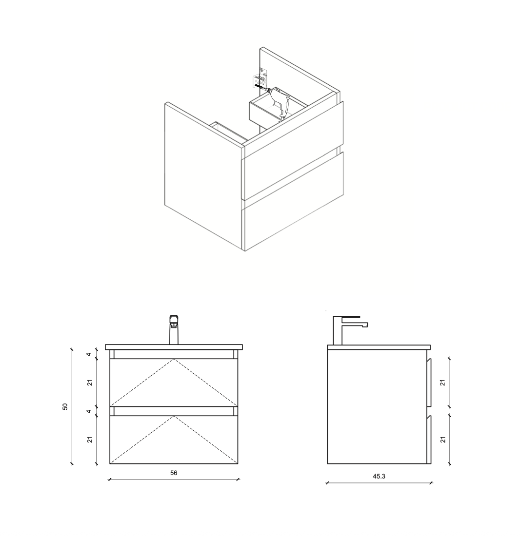• Diepte: De diepte van een badmeubel varieert doorgaans van 40 tot 50 cm. Kies een diepte die past bij de beschikbare ruimte zonder de badkamer te verstikken.