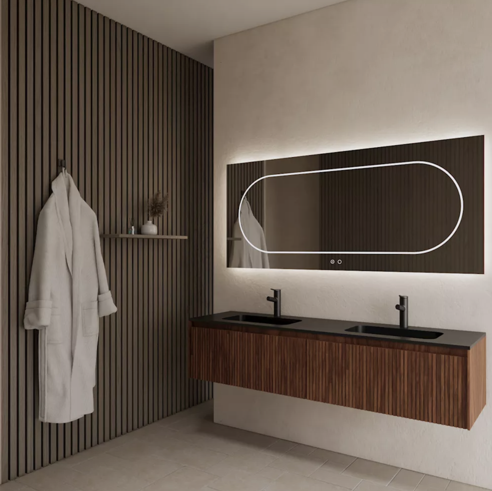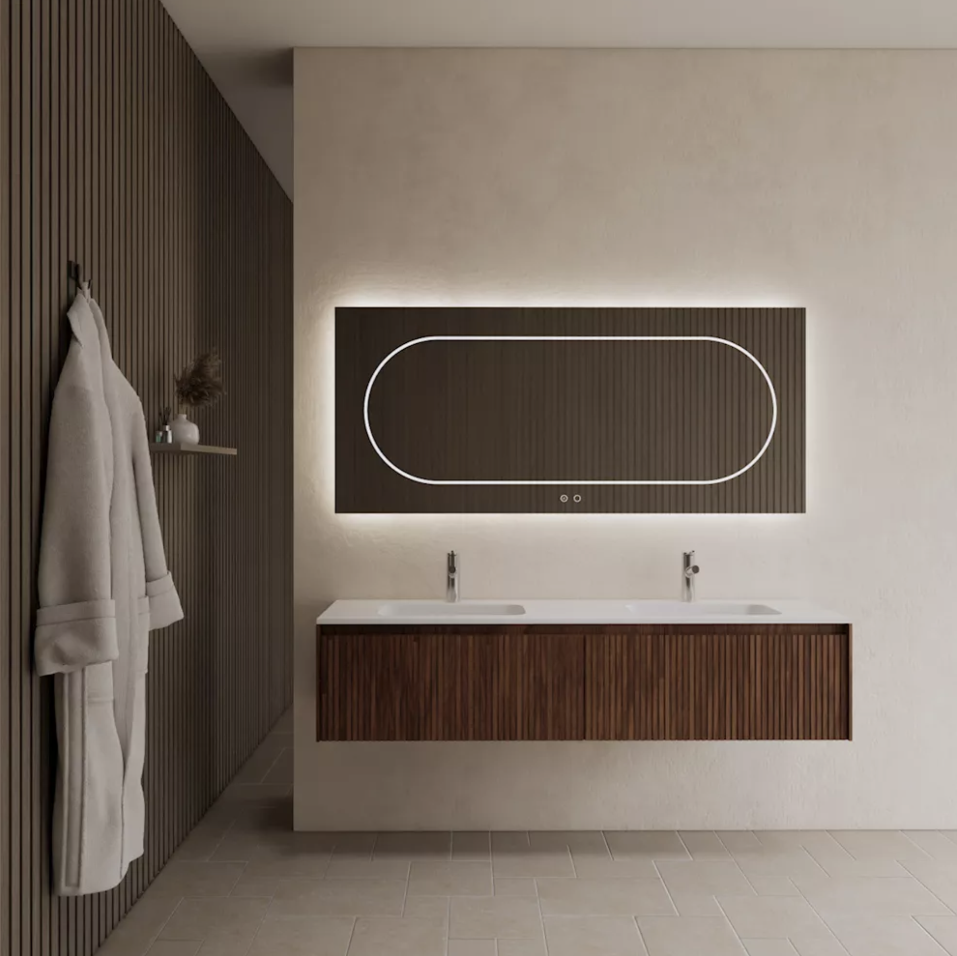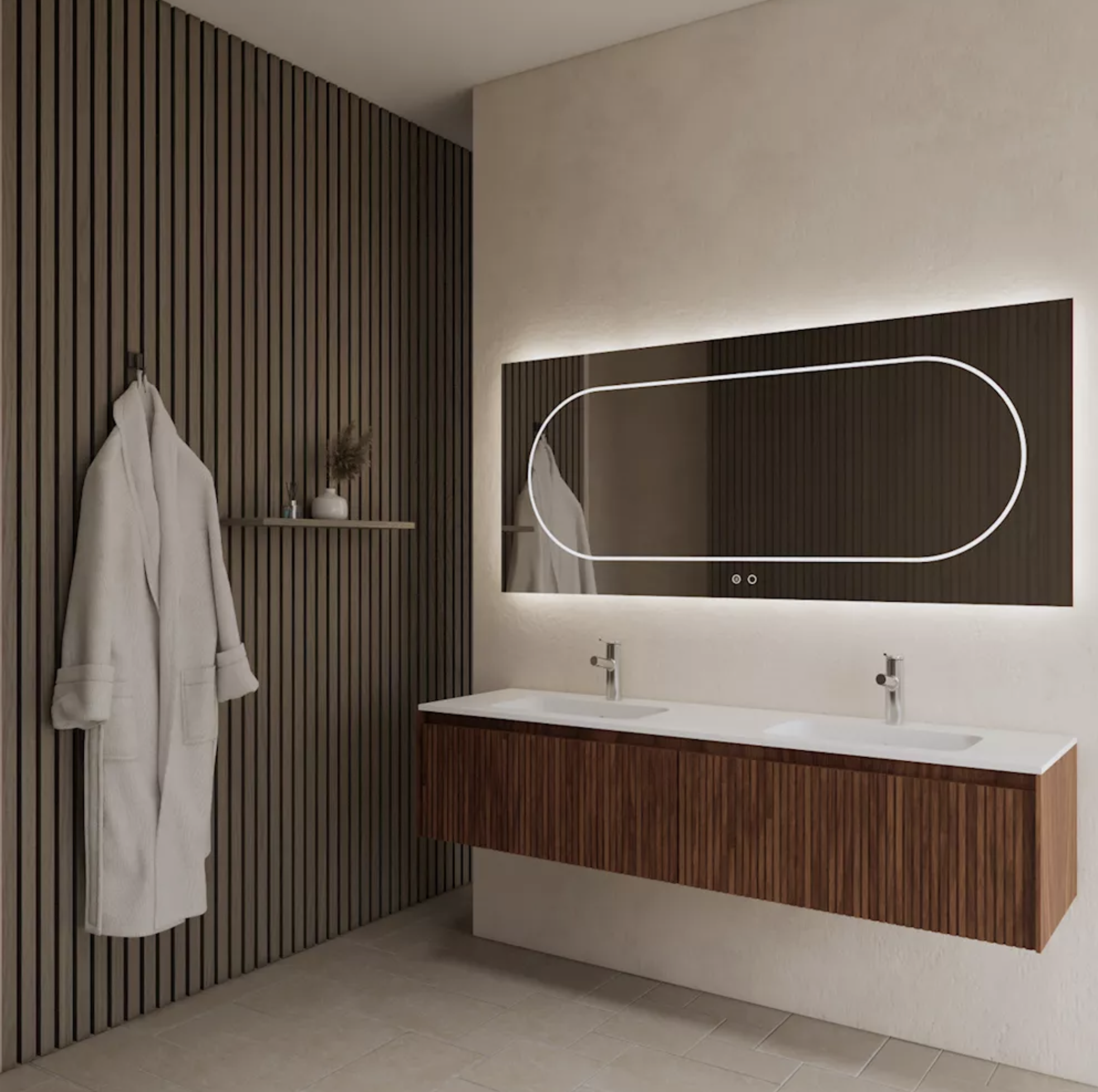 De kleur Walnut geeft warmte en luxe, ideaal voor een tijdloze badkamerstijl.