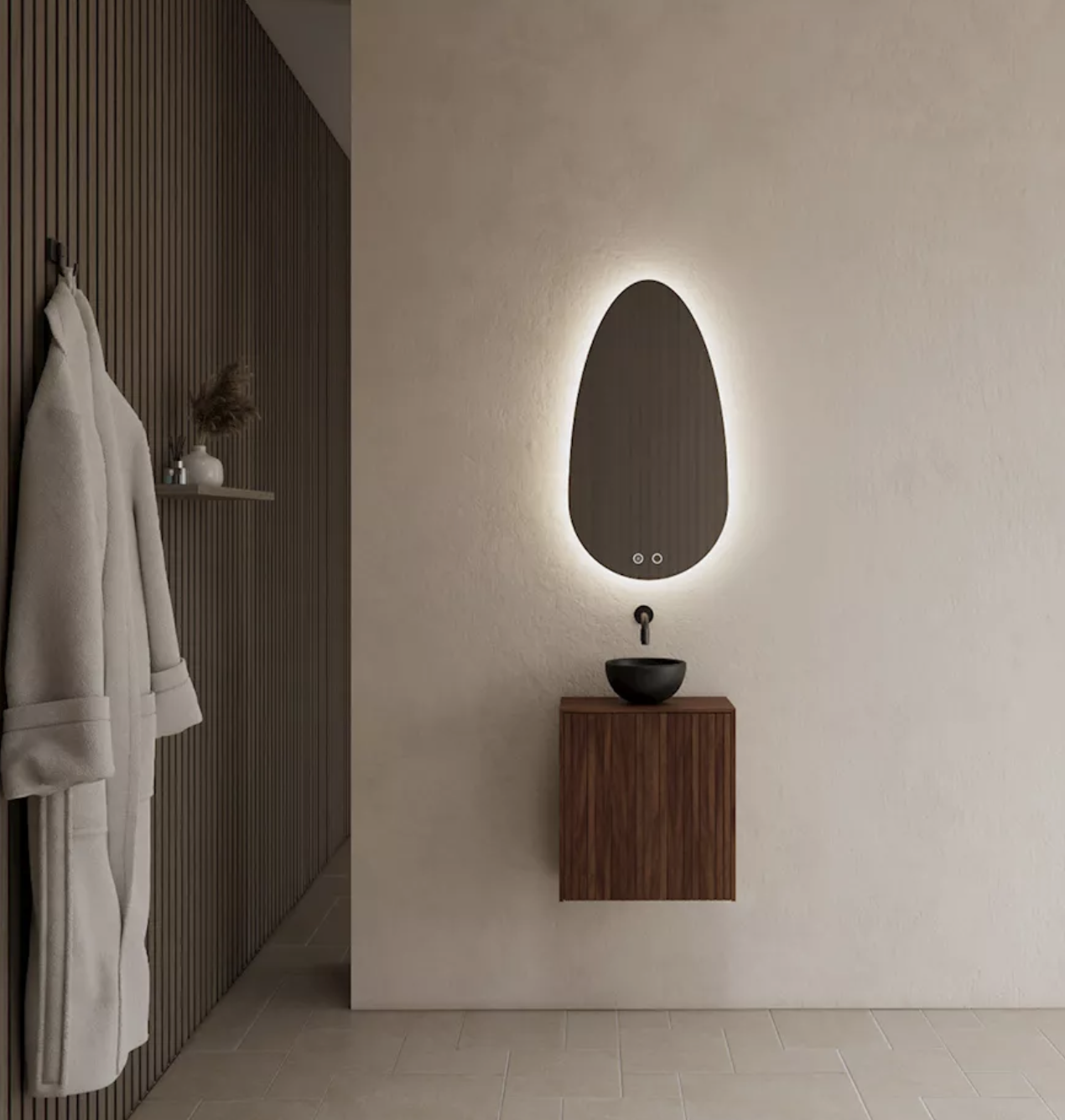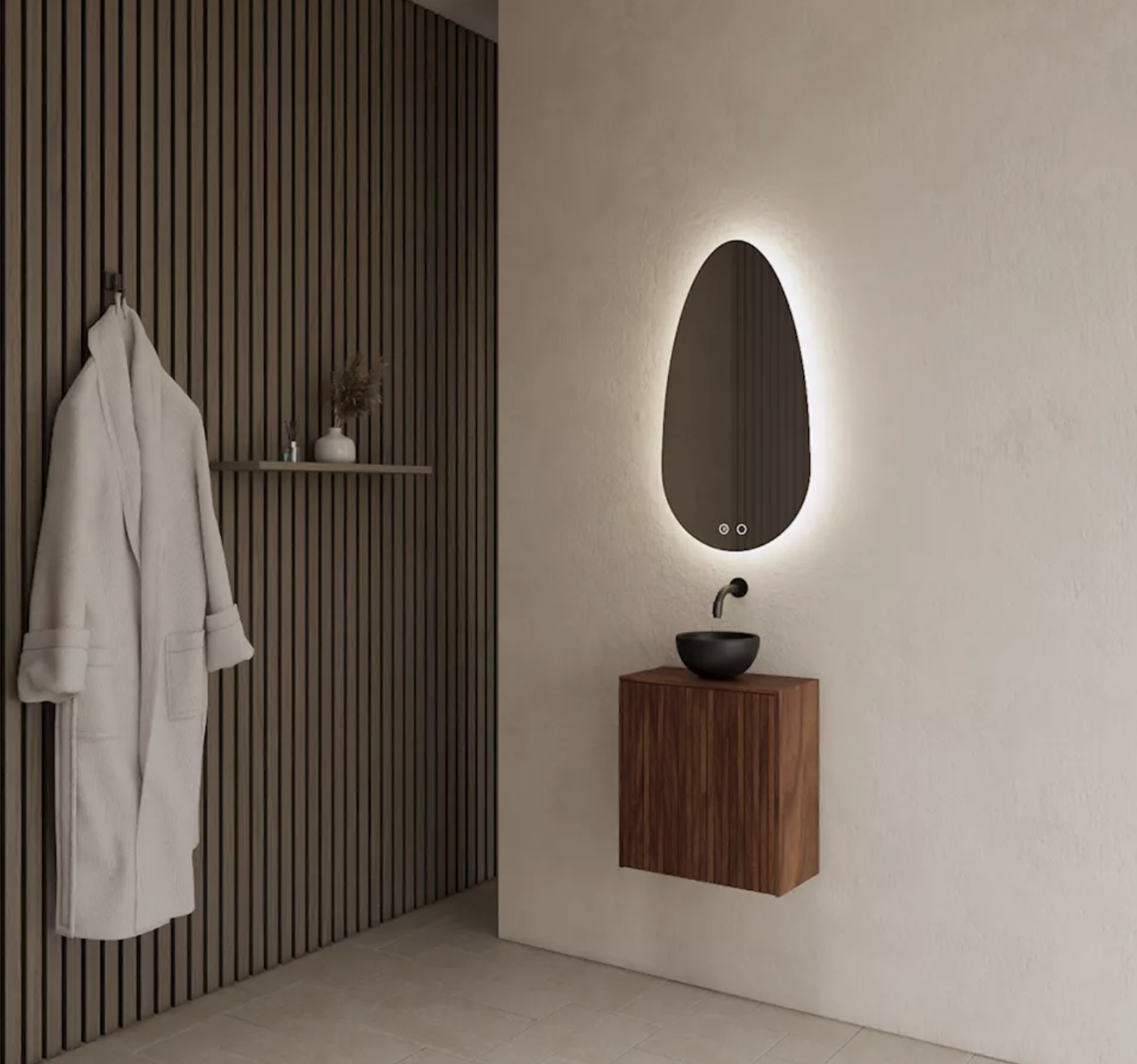 De Timotheus fonteinkast van Gliss Design is een compacte en stijlvolle kast, gemaakt van walnoot fineer en afgewerkt met Rubio Monocoat olie. Het ribbelfront versterkt de luxe uitstraling.